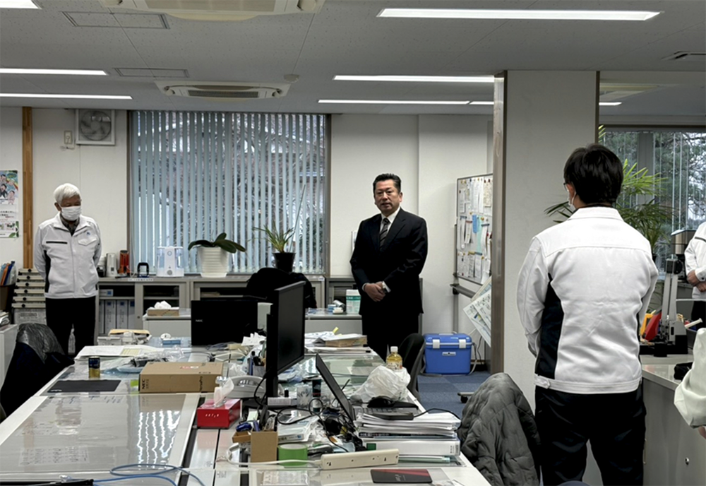 社員一同が集まり、社長及び専務より、新年の挨拶と抱負が語られ、新年がスタートしました。